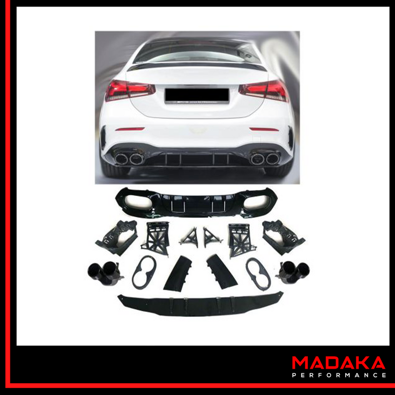 Diffusor mit Doppelendrohren in A45 AMG Optik für Mercedes A-Klasse V177 Bj. ab 2018