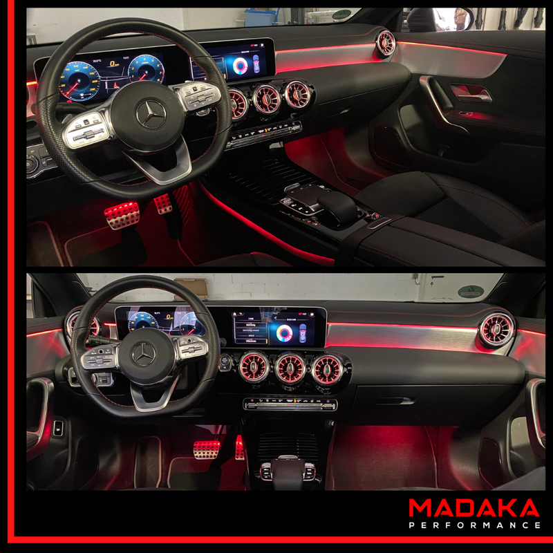Du möchtest in Deinem Mercedes CLA-Klasse W118 die 64 Farben Ambientebeleuchtung nachrüsten? Madaka Performance macht's möglich!
